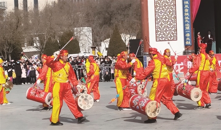 2月11日,來自會寧縣會師鎮(zhèn)的社火隊(duì)在紅軍會寧會師舊址景區(qū)表演,為廣大游客送歡樂。常琦彪 攝...